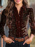 Women's Vintage Flowers Print Lantern Sleeve Velvet Top